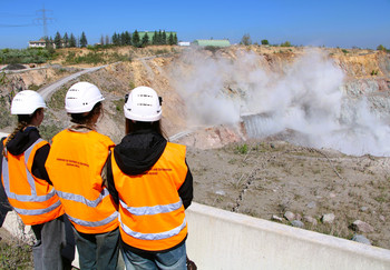Der krönende Abschluss des Zukunftstages am LAGB war die Befahrung eines nahegelegenen Hartgesteinstagebau. Hier lernten sie die ureigenste Zuständigkeit des Bergamtes kennen – die Bergaufsicht. Im Tagebau Schwerz der Mitteldeutschen Baustoffe GmbH gab es als besonderen Höhepunkt für die Gymnasiastinnen sogar eine beeindruckende Sprengung zur Quarzporphyr-Gewinnung zu sehen.